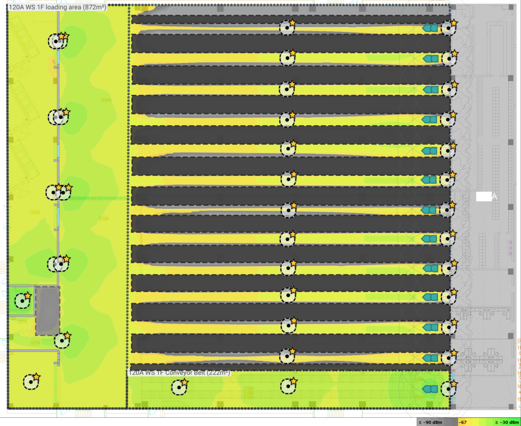 We input data about the warehouse’s dimensions, construction materials, and other relevant factors. The software calculates the best placement for APs, estimates coverage areas, and predicts potential interference sources. These predictions help us optimize the network design, ensuring robust connectivity and minimizing coverage gaps.